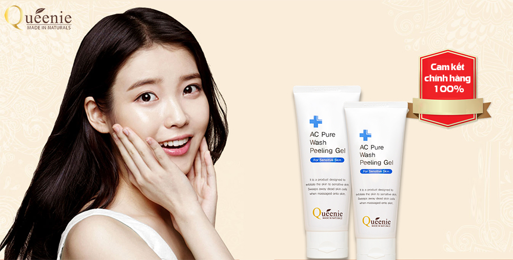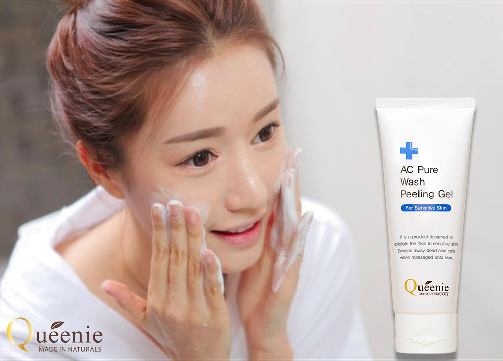Queenie giới thiệu dòng sản phẩm AC Pure Wash Peeling Gel với công thức tẩy tế bào chết độc đáo chỉ có ở Mỹ Phẩm Queenie, chứa cấu trúc xoắn kép, được hình thành bởi hai hợp chất polymer, phân tử nước xoắn kép kết hợp và trao đổi với lớp biểu bì cũ trên da.