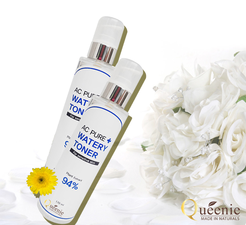 Thông thường, nước chiếm từ 70% - 90% dung lượng trong 1 hộp có dung tích tiêu chuẩn. Tuy nhiên Queenie AC Pure Watery Toner được chiết xuất thực vật lên tới 94% thay vì nước. Đây là nước cân bằng phù hợp với mọi loại da, xuất xứ gần gũi với thiên nhiên nên có thể an toàn sử dụng cho làn da yếu.
